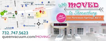 After 55 Years, Queen Vacuum & HomeCare Center in Red Bank, we MOVED our entire operation to a bigger, more beautiful, super-convenient location in nearby SHREWSBURY, NJ! (Don't worry, it's just 3 minutes away from the old shop, but waaaay easier to access!)